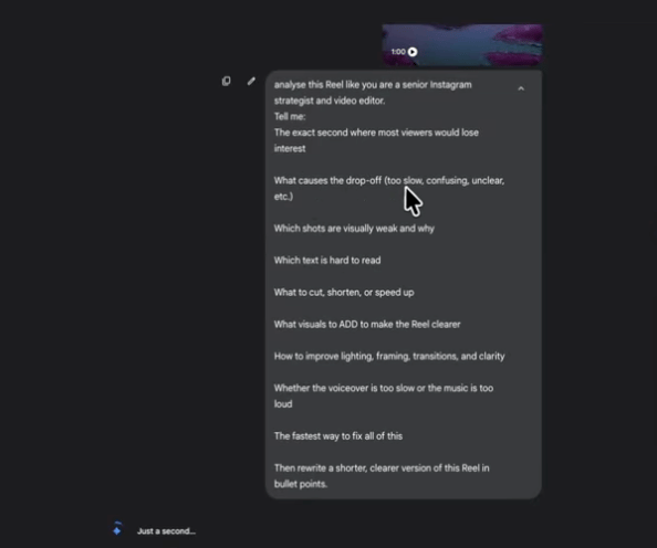 Prompt: Chỉ ra giây thứ mấy người xem dễ rời đi, vì sao, đoạn nào cần cắt/tăng tốc/thêm visual?