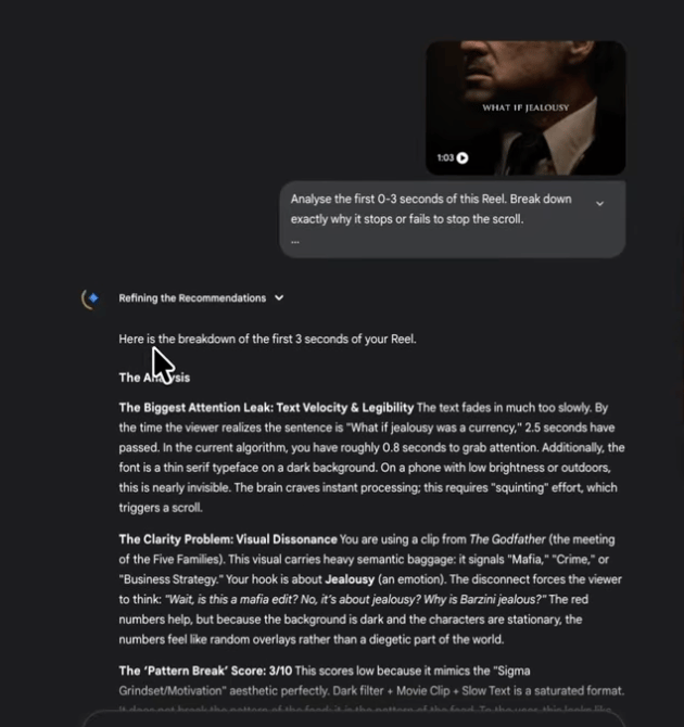 Dùng prompt phân tích 0–3 giây: Tại sao không dừng được scroll? Chỗ nào yếu?
