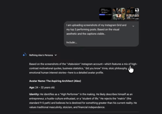 Gemini tạo “nhân vật” cụ thể (VD: nam 25–32, mê self-improvement, muốn tự do tài chính…).
