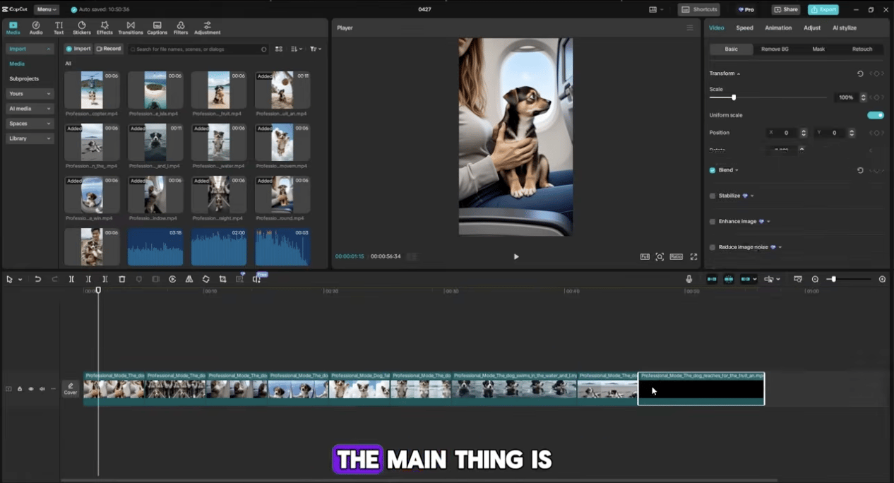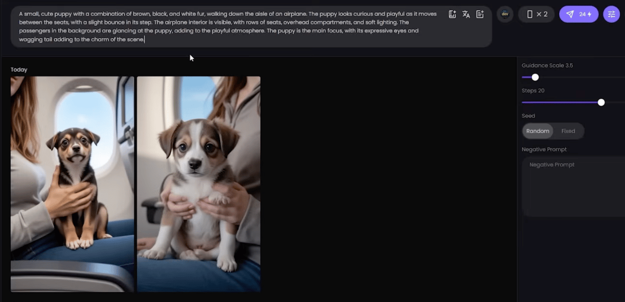 Sau đó, tôi sử dụng những hình ảnh này để tạo ra những video ngắn. Tôi yêu cầu AI tạo ra những bức ảnh với các chủ đề như “Chú chó bay trên máy bay” và “Chú chó gặp tai nạn rơi vào biển”.